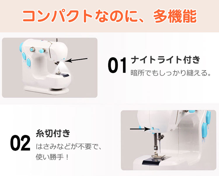 コンパクトミシン 2点目から5000円 新生活 応援 ハンドミシン 小型 ミニミシン ハンディミシン ダブルスレッド